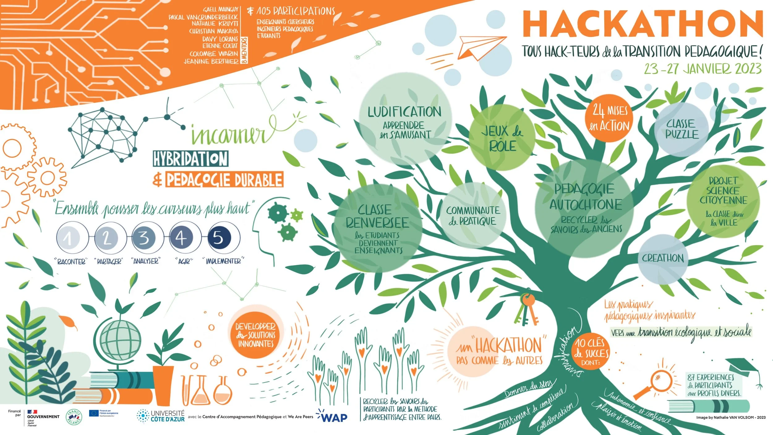 Le Centre d’Accompagnement Pédagogique (CAP) de l’Université Côte d’Azur a rassemblé enseignants-chercheurs et étudiants autour du HACKATHON “TOUS HACK-TEURS DE LA TRANSITION PÉDAGOGIQUE !"